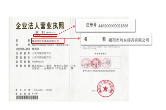 揭陽模具副會長單位 營業(yè)執(zhí)照